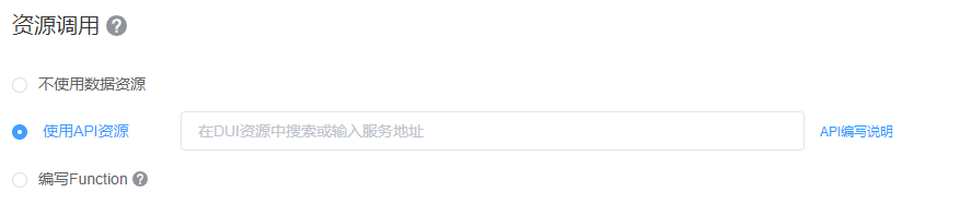 1、选择使用API资源。您可以参照《API接口编写说明》来定义API。